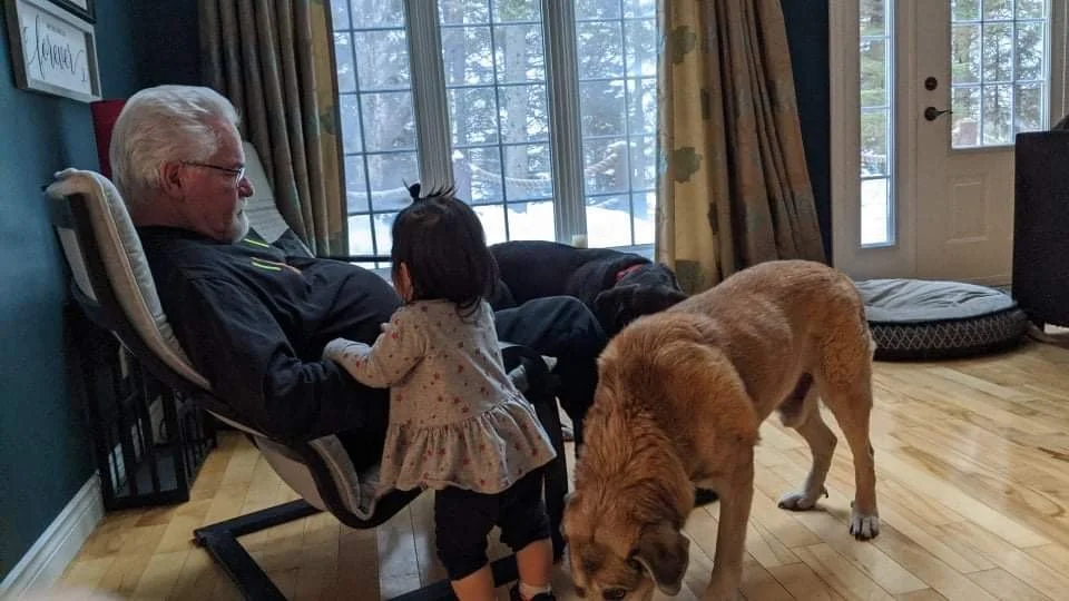 5 kids • 6 grandkids • 3 homes. • 7 dogs • 3 cats •